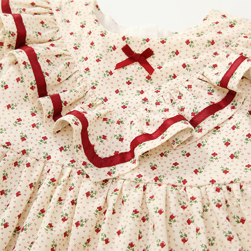 Crafted from high-quality cotton, this dress promises to keep your little one comfortable and stylish throughout the season. The soft treatment of the fabric ensures a gentle touch against the skin, making it perfect for playdates or special occasions.
